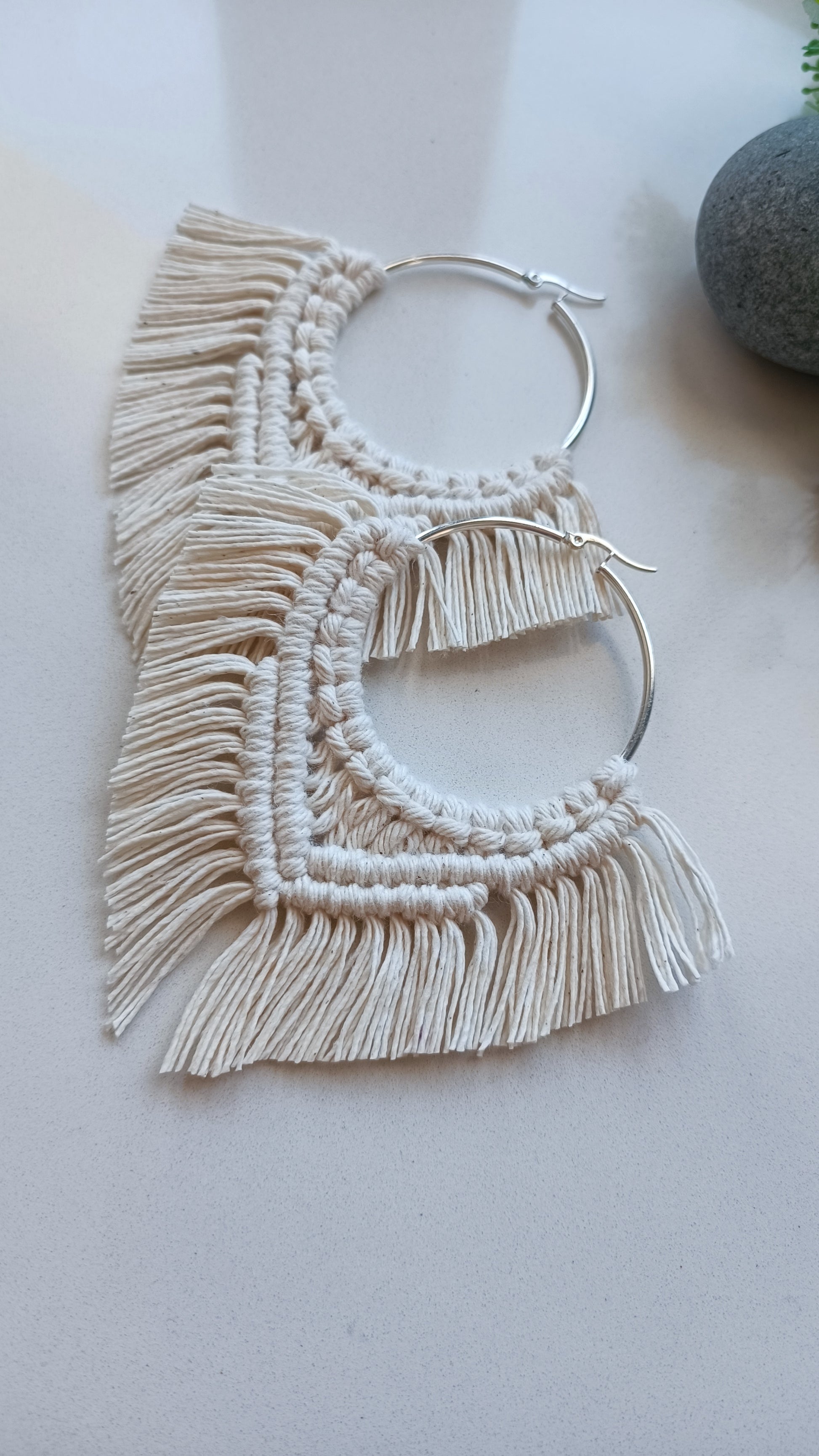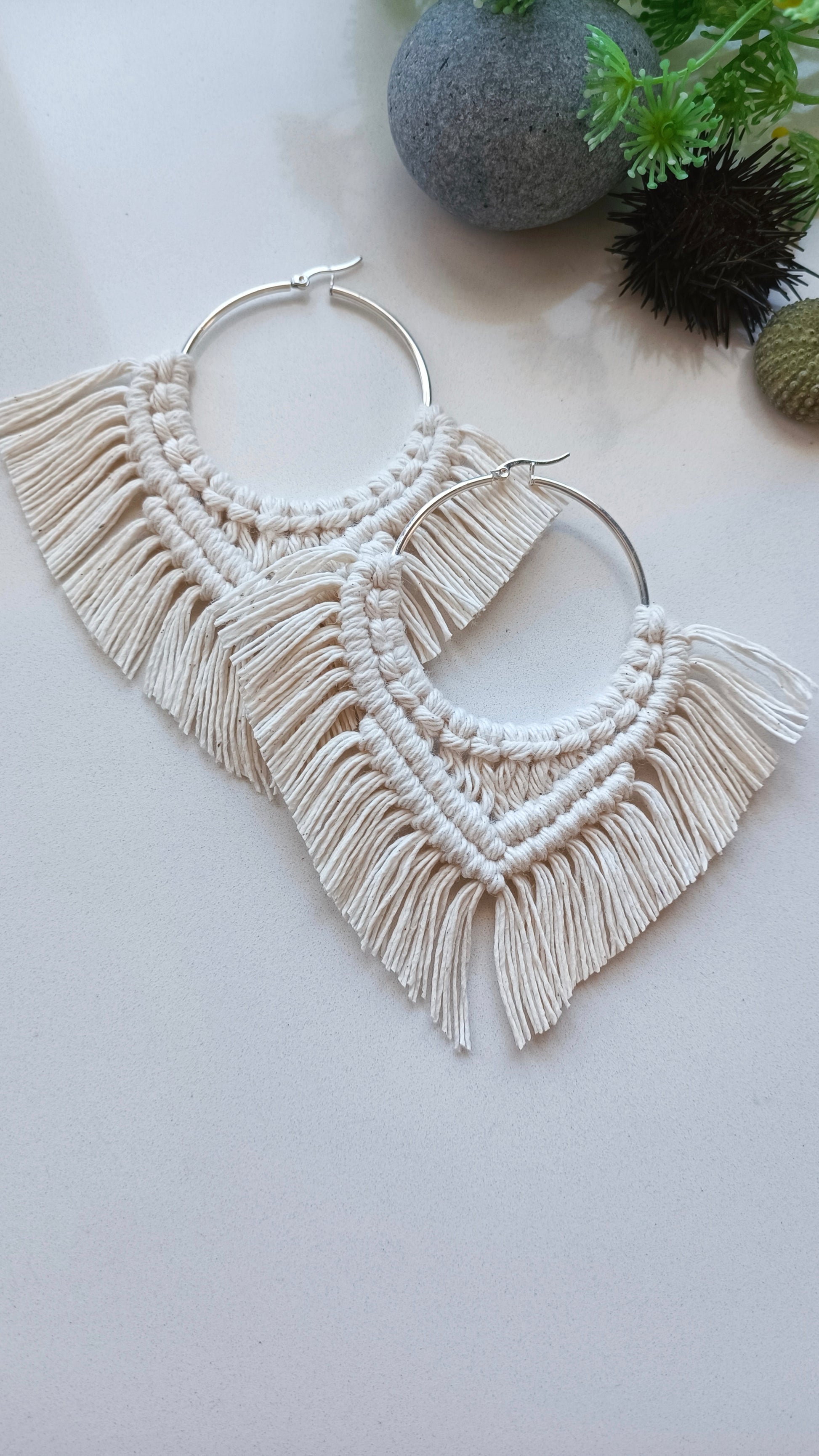 Pendientes de hilo de macrame,la argolla es en acero inoxidable antialérgico,no pesan,Son bajo pedido