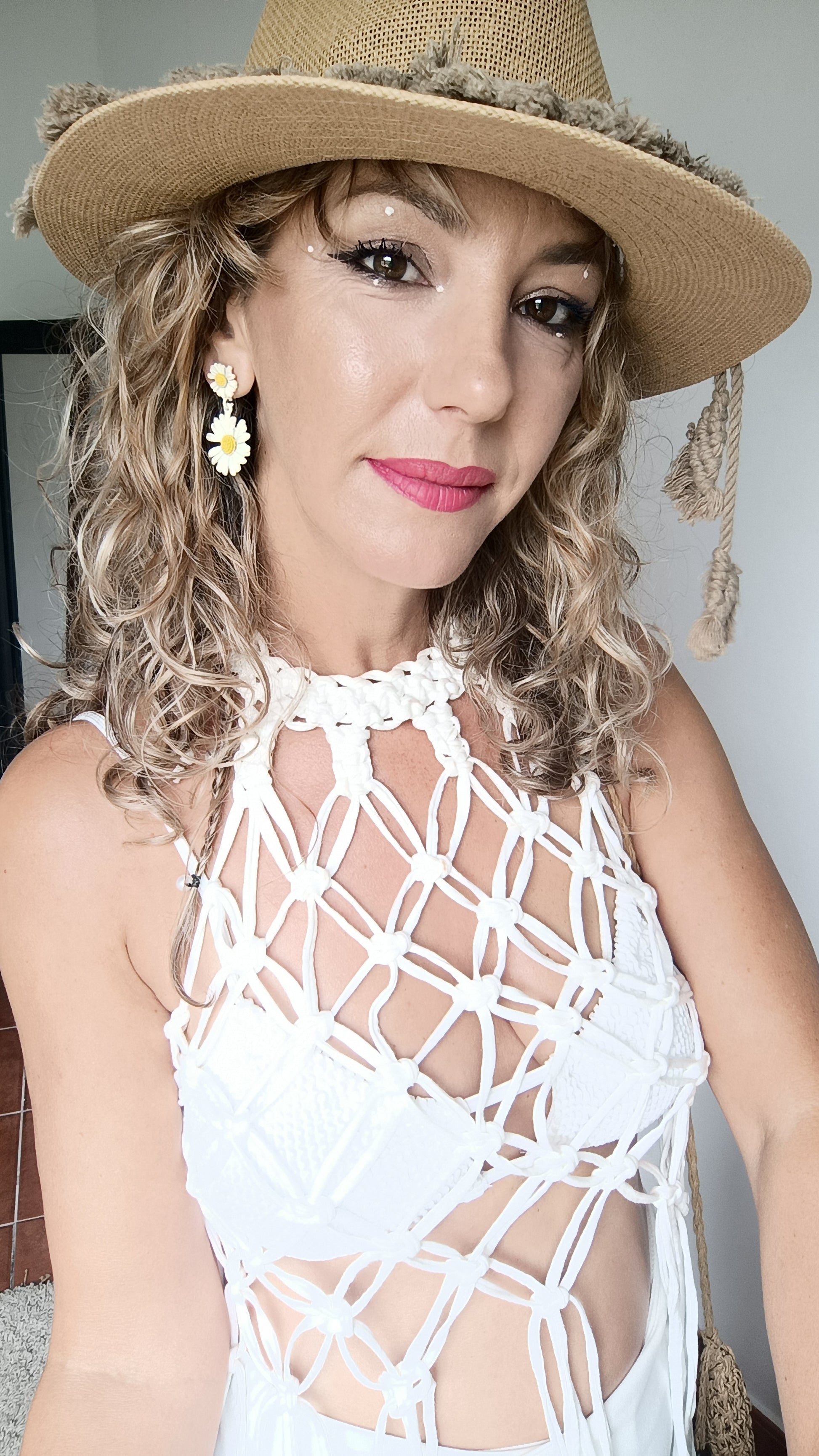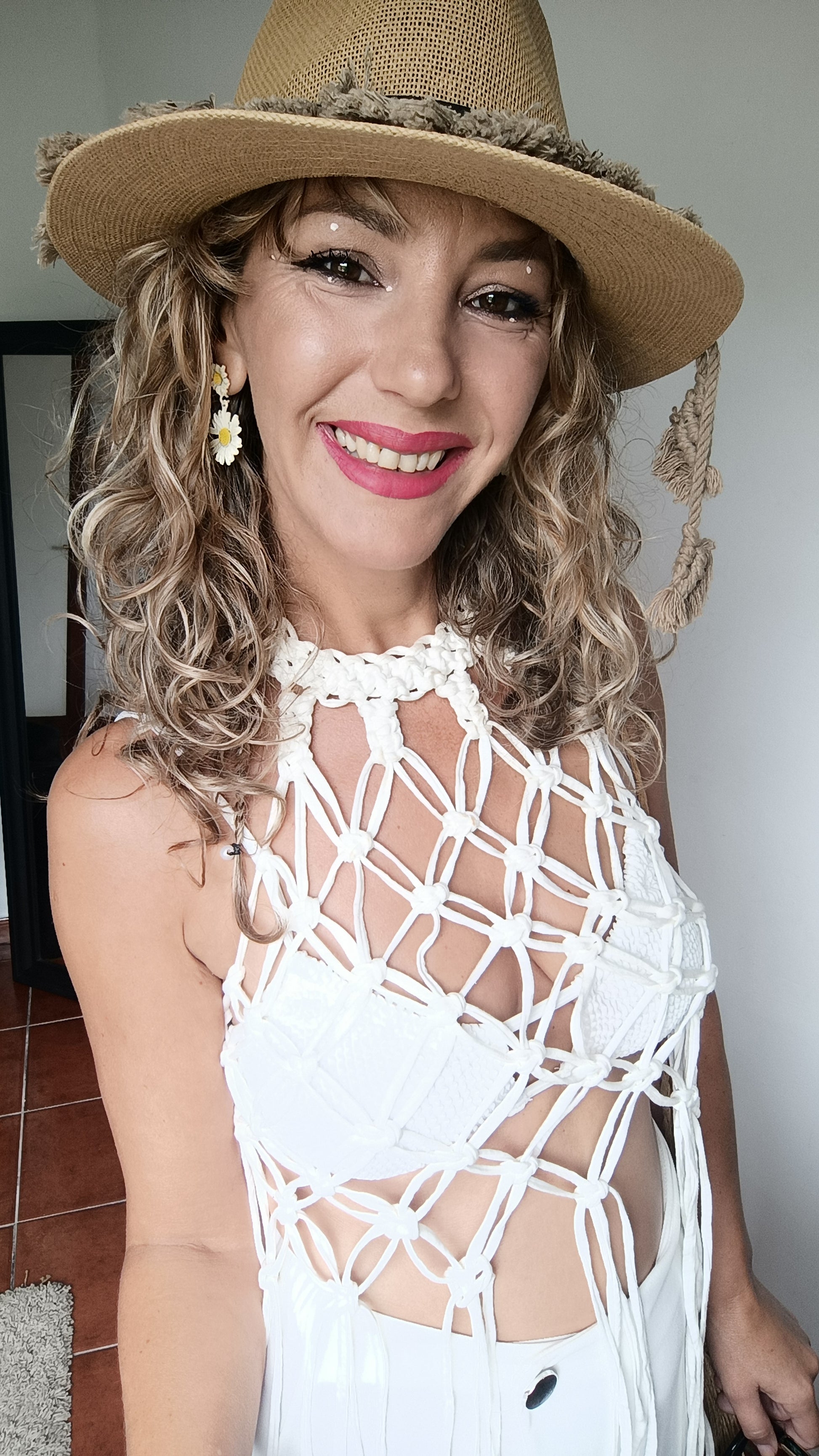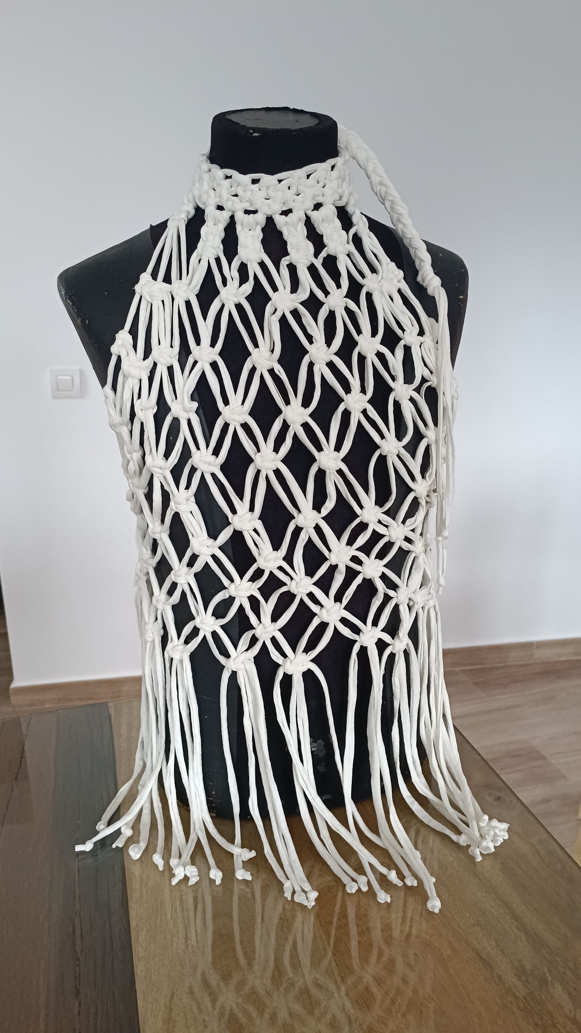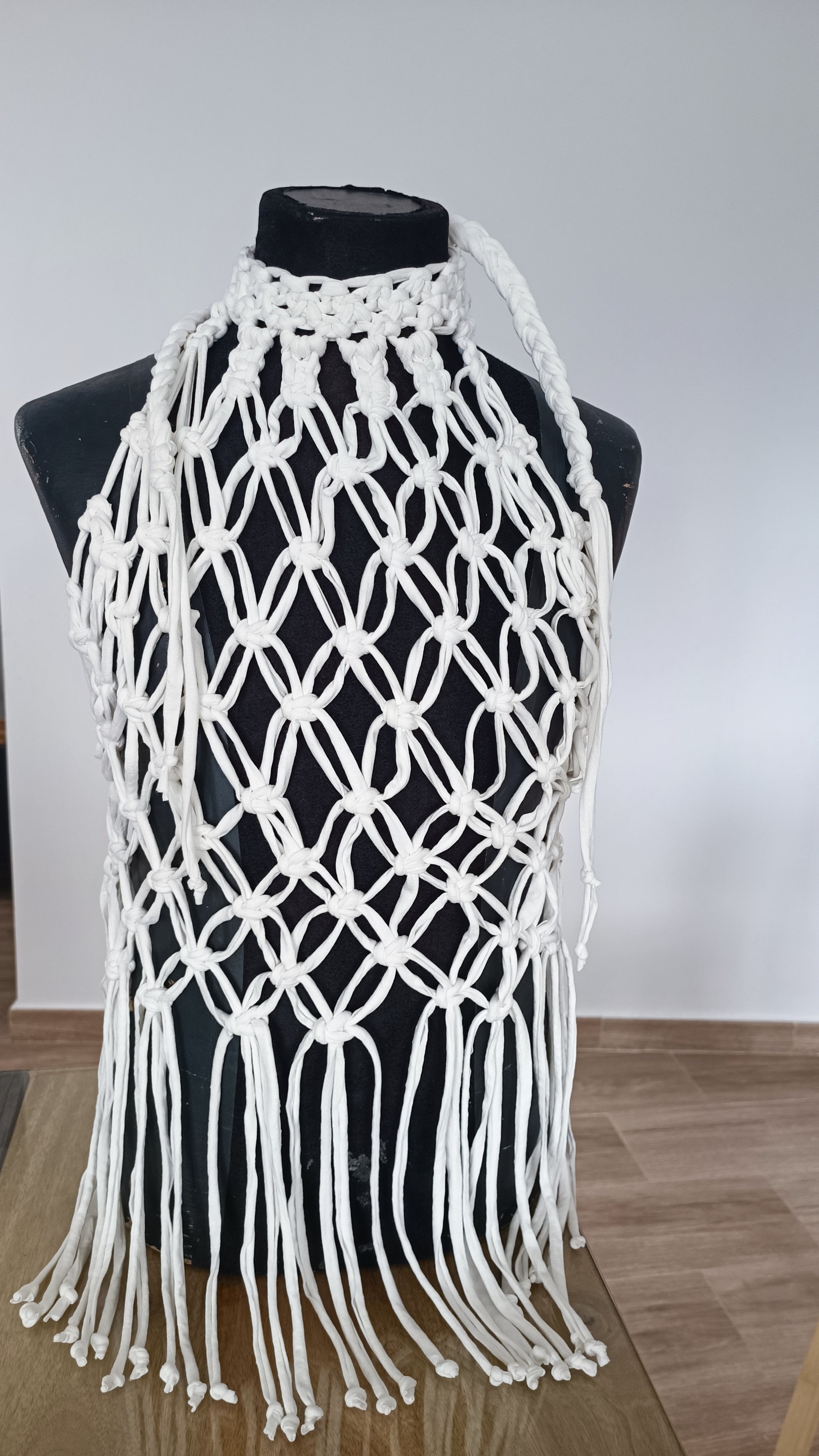 Top de Macrame hecho totalmente a mano ,es de algodón 95% estira mucho al ser elástico